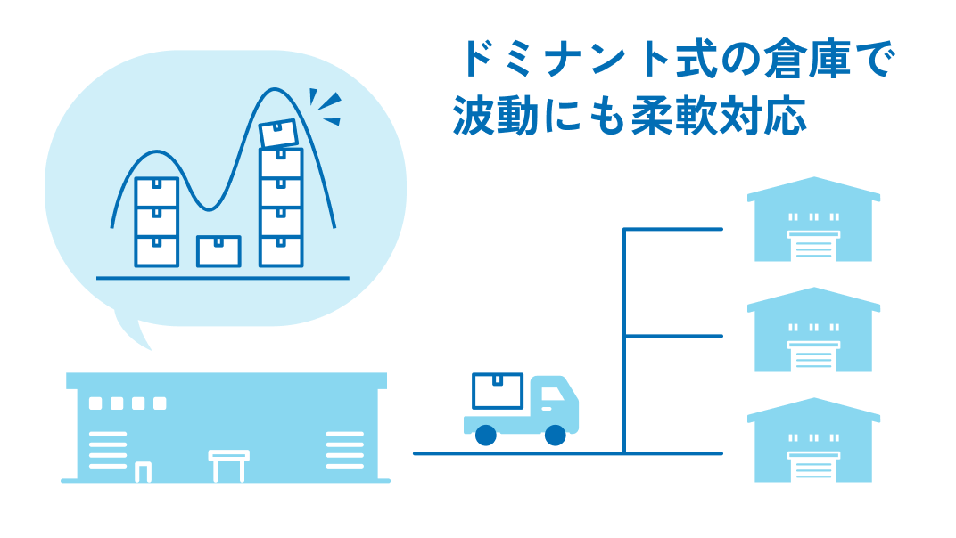 ドミナント式の自社倉庫による柔軟な出荷体制で、季節波動やキャンペーン波動にも対応。365日稼働で安定した物流を実現します。