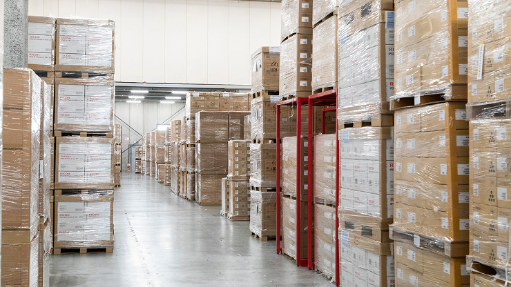 入庫数量の確認が終わりましたら、パレット単位の商品についてはラックへ、段ボール単位の商品については棚に保管していきます。